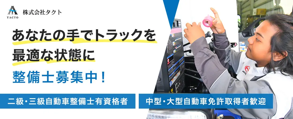 【車好き必見!賞与・年2回】中型・大型トラックの整備士を募集